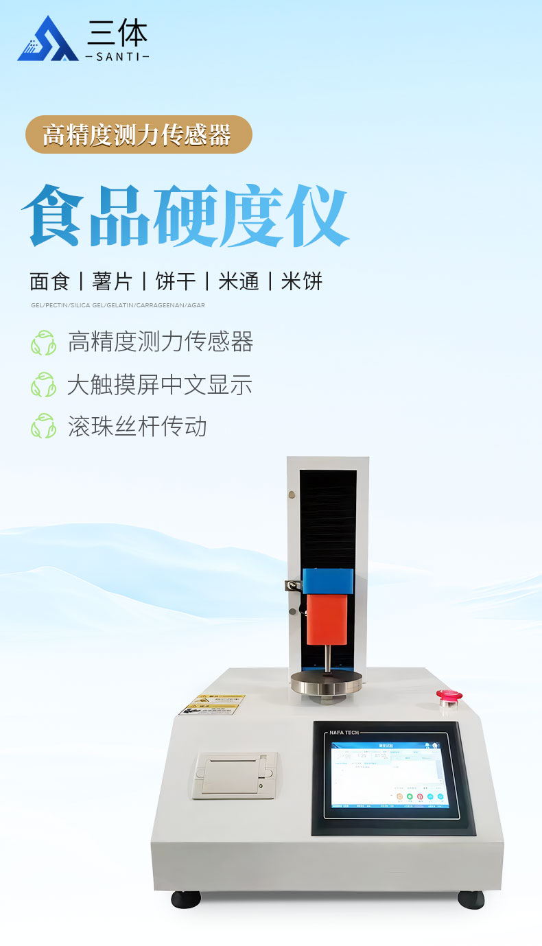 食品硬度儀適用于各類面食、薯片、餅干、米通、米餅等焙烤食品物性測定,如餅干破裂強(qiáng)度測定、食品咀嚼性測定、餅干酥脆性測定、面包硬度測定、糖果硬度測定、果凍破裂強(qiáng)度測定等各類休閑食品。食品硬度儀特點(diǎn):1、采用芯片控制,高精度測力傳感器,精度高。2、采用高性能電機(jī),滾珠絲桿傳動,保證該儀器傳
