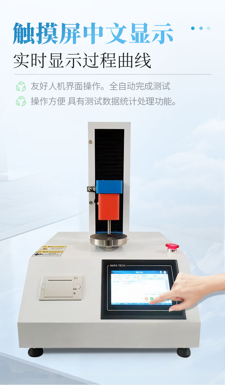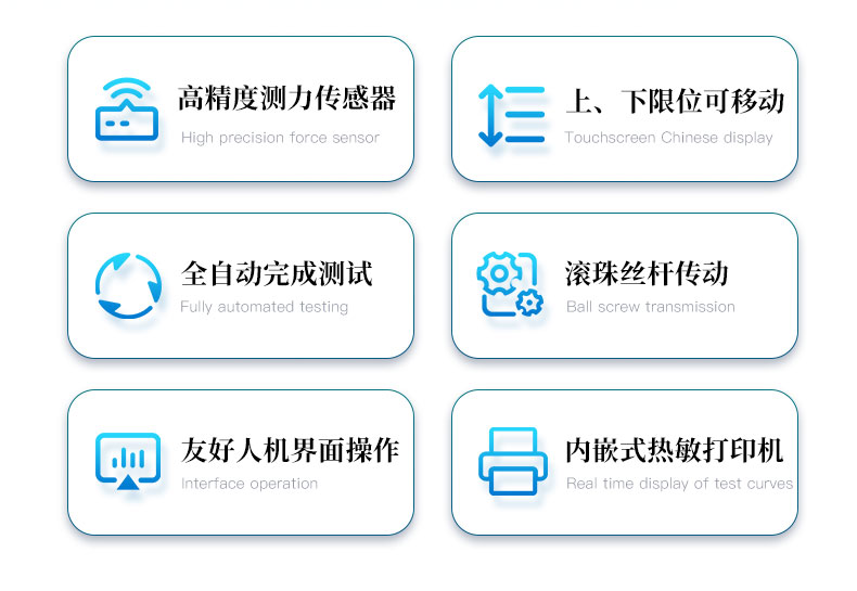 3、大觸摸屏中文顯示(可中英文切換),友好人機(jī)界面操作。全自動完成測試。操作方便,具有測試數(shù)據(jù)統(tǒng)計(jì)處理功能。