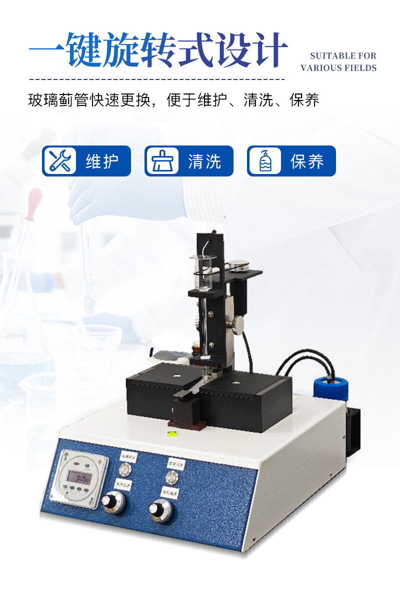 (7)一鍵旋轉(zhuǎn)式設(shè)計(jì),玻璃薊管快速更換,便于維護(hù)、清洗、保養(yǎng);